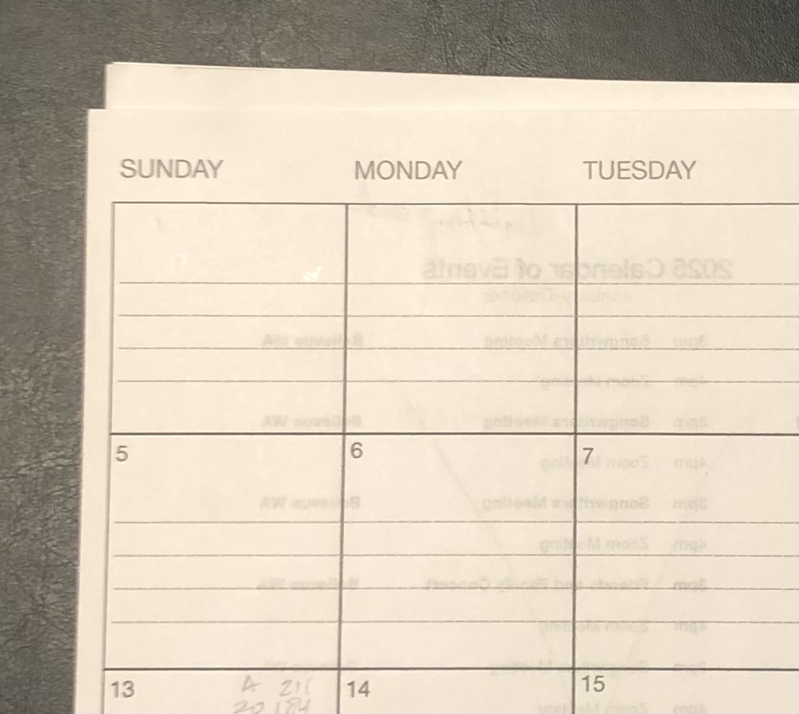 Our generously designed 2025 Worship Planner features a laminated cover (shown above), weekly and monthly views, with adequate room for your notes and plans. Our weekly view begins on Sunday, with Scripture appropriate for the Lord’s Day, the true beginning of our week. Inspirational Scripture verses are appropriately added to the weekly view in small type, to give you the most room for your notes. 28# paper makes it easy to use with either pen or pencil, and this super easy-erase allows you to make corrections in your entries made with pencil markings. 8.5″ x ll”, spiral bound for your convenience.